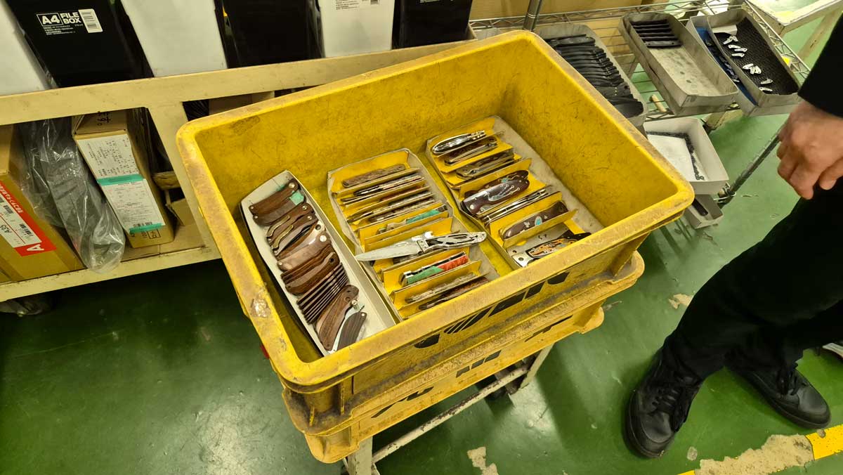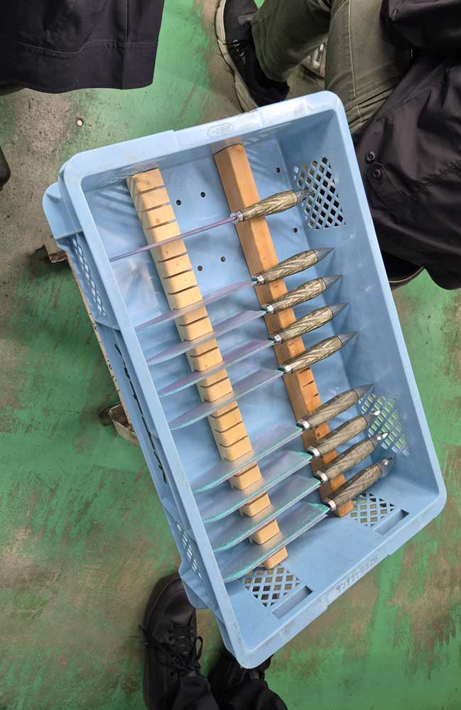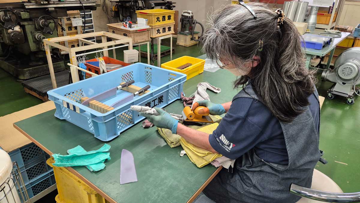 תחנות פוליש במפעל. ניתן לראות כמה עבודה ידנית מושקעת בגימור של כל סכין מטבח.