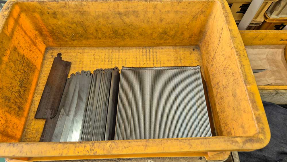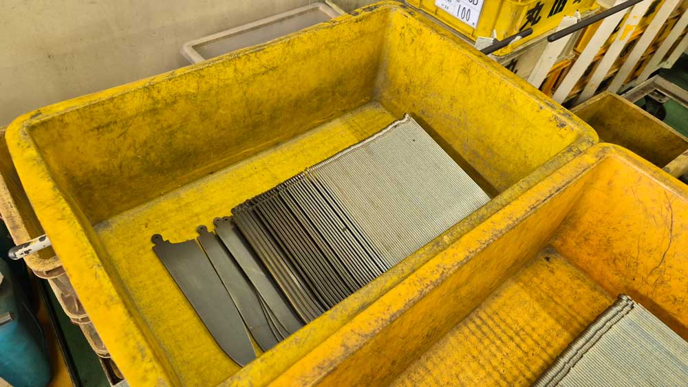 השלב הראשוני בייצור סכינים במפעל הוא חיתוך הפלדה ע"י מכונת חיתוך לייזר אוטומטית.