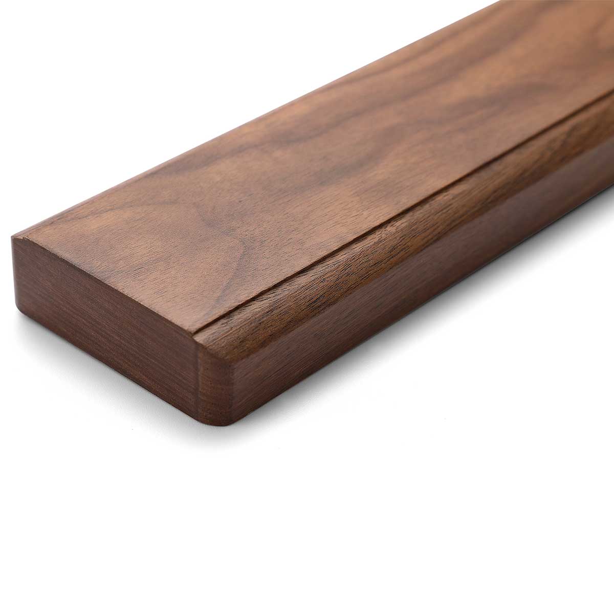 מגנט לתליית סכיני שף עשוי עץ בעבודת יד. המגנט נתלה על הקיר ע"י שני ברגים ויכול להחזיק 6-8 סכיני מטבח.